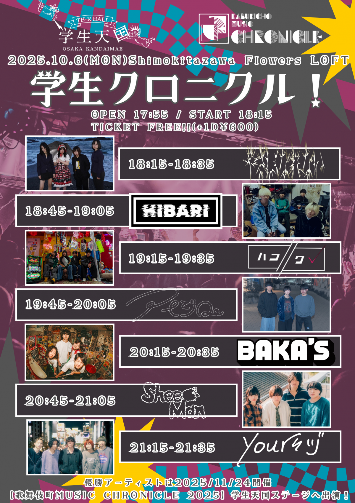優勝者は2025/11/24(月祝)開催『歌舞伎町MUSIC CHRONICLE 2025』学生天国ステージに出演できます!!